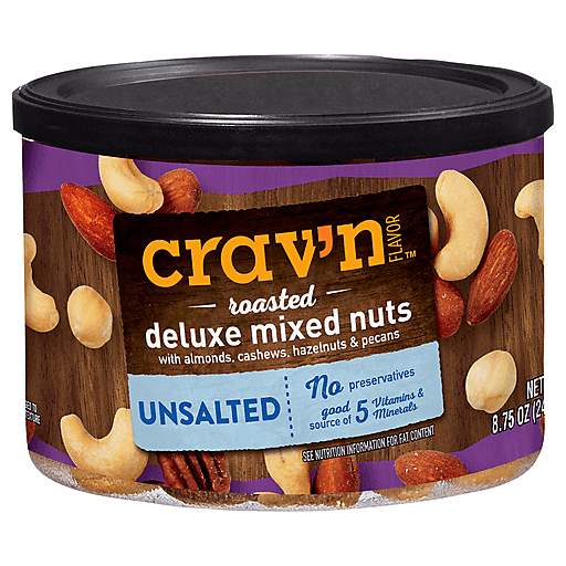 Crav'n Flavor Mixed Nuts, Deluxe, Roasted, Unsalted 8.75 Oz