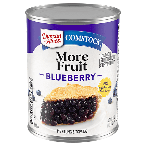 For delicious made-from-scratch flavor, with 10% more fruit than our original blueberry, add Duncan Hines Comstock More Fruit Blueberry Pie Filling and Topping to your next decadent creation. Fruits picked at their peak are then canned for the perfect flavored pie filling, pie topping or baking enhancement. Simply add it to your pie shell, top your pie or combine it with your own special touches for a homemade-quality dessert that is sure to be a hit. Use it as a delicious pancake or waffle topping for a sweet spin on breakfast that contains no high fructose corn syrup. Stock up on these must-have baking supplies for flavorful pies and baked goods in a snap. Duncan Hines Comstock: easy as pie.