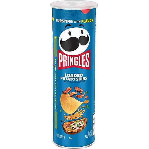 What comes next after the “pop” of a Pringles can? The crisp, crunchy, hit-the-spot taste of potato seasoned with your favorite Loaded Potato Skins seasonings and flavors. Ingeniously shaped Pringles Loaded Potato Skins potato crisps chips are insanely light, crispy, and never greasy. Perfect for sharing, these crisps are bursting with savory and salty flavors featuring smoky flavor, zesty green onion, cheddar cheese and a blend of spices; With this convenient, portable can, it’s easy to create your own snacking moments wherever and whenever. Grab a can as a pick-me-up for after school or pack as the ultimate car snack for road trips. Bring these snacks to game time and pack a few for other Pringles fans. Stash this anytime snack in your work desk or pantry. Share Pringles at your next cookout or BBQ to turn up the flavor and fun among family and friends. Get your hands on Pringles Loaded Potato Skins potato crisps chips for an irresistible taste experience that keeps you coming back, stack after stack.